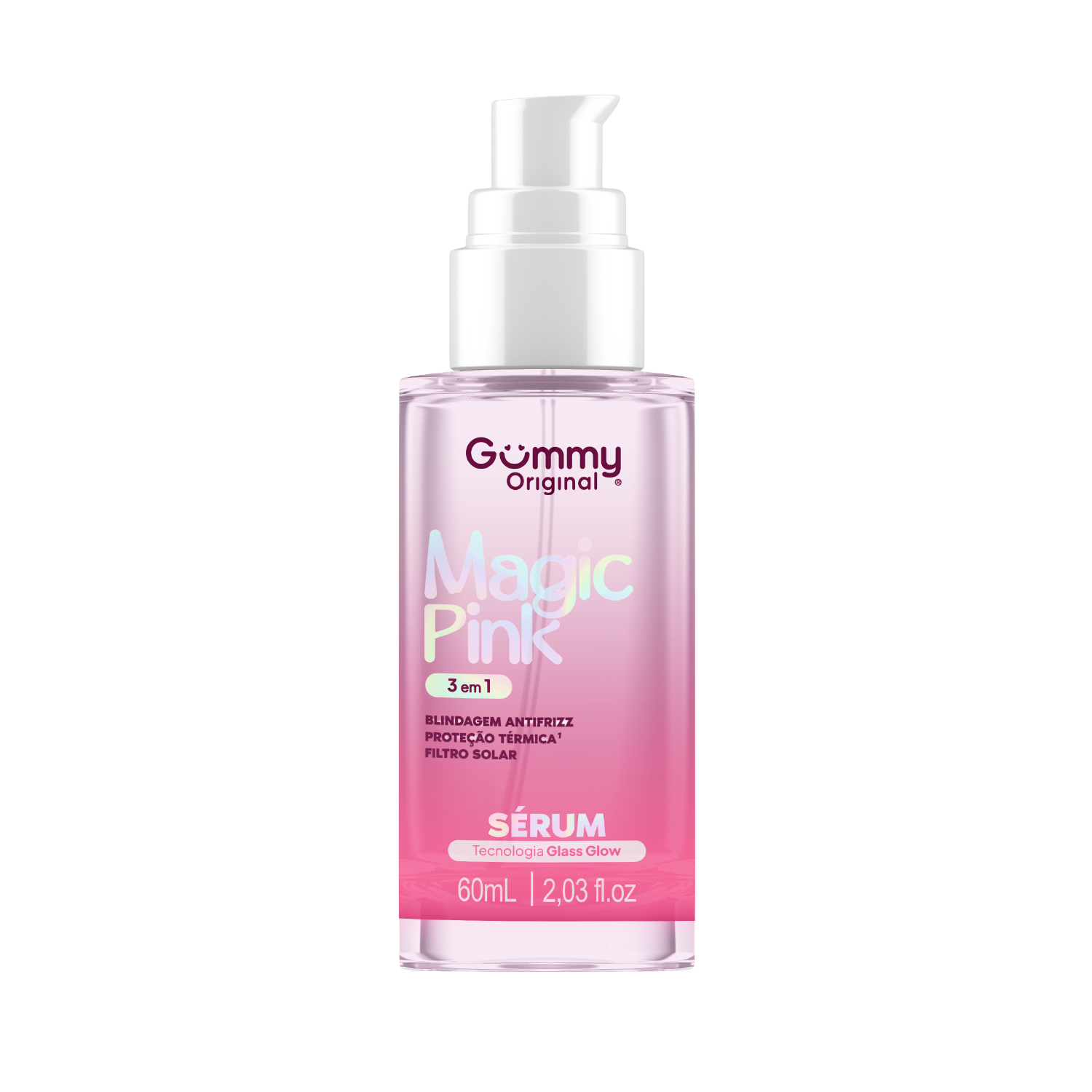 O Sérum Gummy Original Magic Pink 3 em 1 é um finalizador multifuncional desenvolvido para proporcionar blindagem antifrizz, proteção térmica e filtro solar, além de deixar os fios mais alinhados, macios e com brilho intenso.